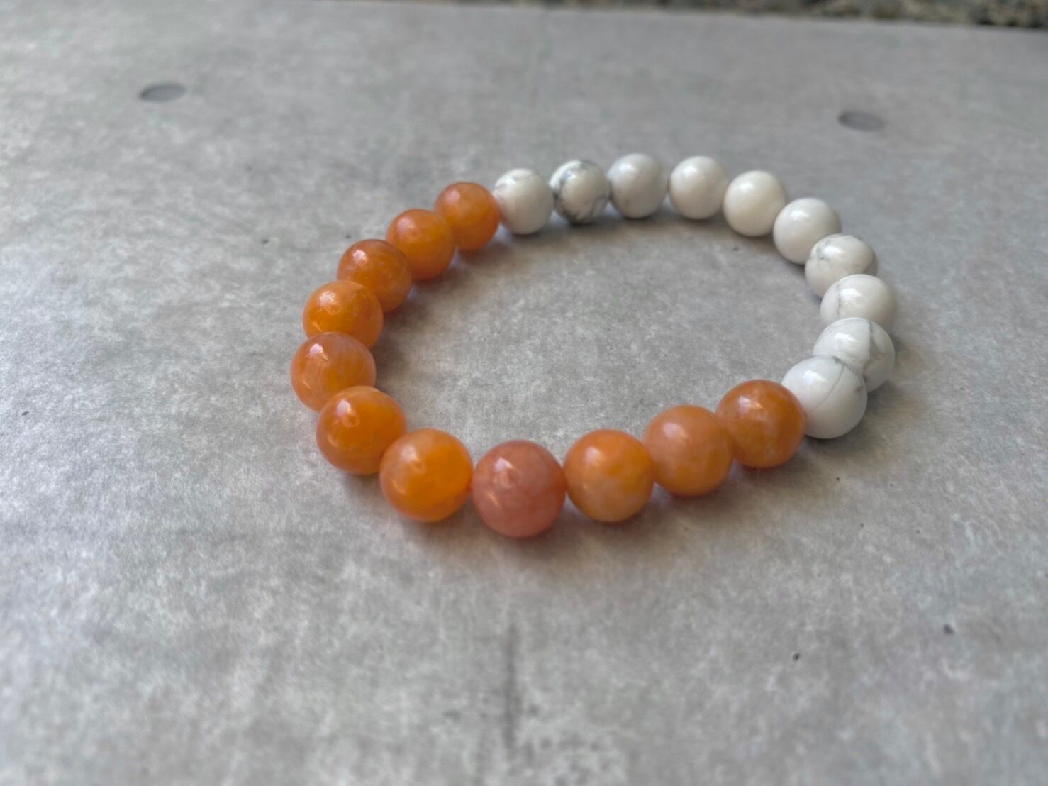 まるでフルーツのような瑞々しい色合いをしたオレンジカルサイトに、大理石のようなキリっとしたハウライトを合わせました✨